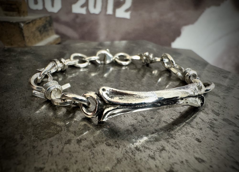 Each link is individually handmade and the bone hand carved in wax and then cast in silver.