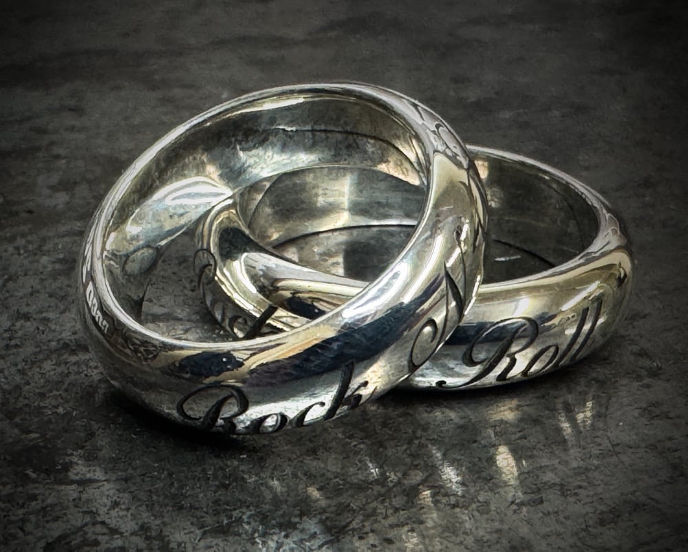 A beautiful silver ring engraved and oxidised to highlight those classic words. Handmade and engraved in our Grimsby workshop.