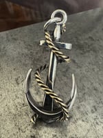 Large Silver Anchor Pendant with 9ct Gold Rope.